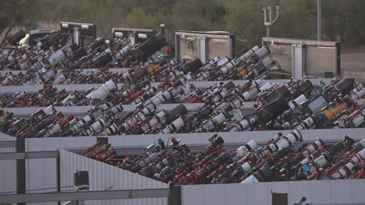 في النهار، يبدو صف من السقائف البسيطة في مدينة روكوود الهادئة بولاية تكساس، وكأنه مجرد مكان لتخزين أدوات المزرعة والأعلاف. ولكن عندما تغرب الشمس تحت الأفق، تتقشر أسطحها في انسجام تام لتكشف عن شبكة مخفية مكونة من مئات التلسكوبات.