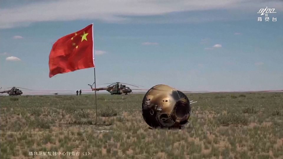 وهبطت وحدة إعادة الدخول بنجاح في منطقة محددة في منطقة منغوليا الداخلية بشمال الصين بعد الساعة الثانية ظهرًا بالتوقيت المحلي، وفقًا لإذاعة CCTV الحكومية. وأظهر البث المباشر الذي بثته قناة CCTV الوحدة وهي تهبط بالمظلة وسط تصفيق حار في غرفة التحكم بالمهمة.