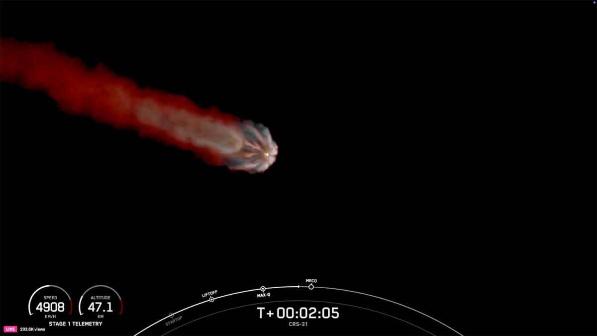 بعد أقل من 10 دقائق من الإقلاع، تم إيقاف المحرك المحسن للتفريغ الذي يشغل المرحلة الثانية من الصاروخ Falcon 9، وبعد دقيقة واحدة، تم إطلاق Dragon ليطير بمفرده. إذا سارت الأمور على ما يرام، فسوف تلحق بالمحطة الفضائية صباح الثلاثاء وتتحرك للالتحام في ميناء المختبر الأمامي في الساعة 10:15 صباحًا