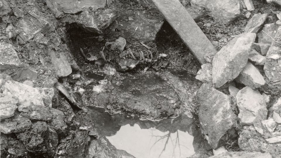 تم اكتشاف بعض بقايا هيكله العظمي تحت الحجارة الكبيرة أثناء التنقيب في البئر عام 1938. وظهر المزيد من عظامه في عمليات التنقيب الجديدة في عامي 2014 و2016 على طول الجانب الجنوبي من البئر، بما في ذلك أجزاء من يده اليسرى (ذراعه اليسرى). كان مفقودًا) والجمجمة التي وجدها الباحثون منفصلة عن الجسم.