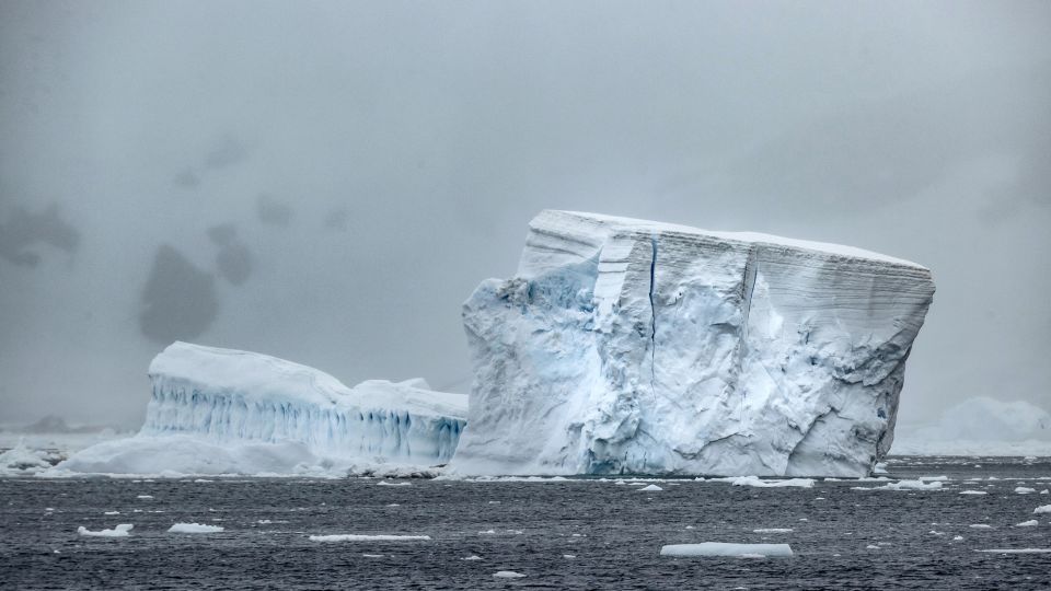 تطفو الجليد بالقرب من ساحل غرب أنتاركتيكا في 28 أكتوبر 2016. يشعر العلماء بالقلق من أن الغطاء الجليدي في غرب القطب الجنوبي قد يكون في حالة من الانخفاض الذي لا رجعة فيه يساهم بشكل مباشر في ارتفاع مستويات سطح البحر. – ماريو تاما/غيتي إيمس