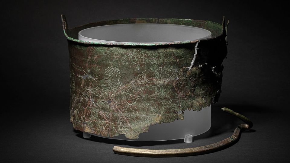 تم العثور على قاعدة الدلو ، التي هي في حالة جيدة بشكل مدهش ، في قطعة واحدة ، وأظهرت فحوصات التصوير المقطعي حلقات متحدة المركز تشير إلى أنها مصنوعة من خلال المطرقة الباردة – عندما يتشكل المعدن مثل النحاس عن طريق الحركات الإيقاعية دون تسخين. لا يوجد حاليًا أي دليل يشير إلى أن الدلو كان له قمة.