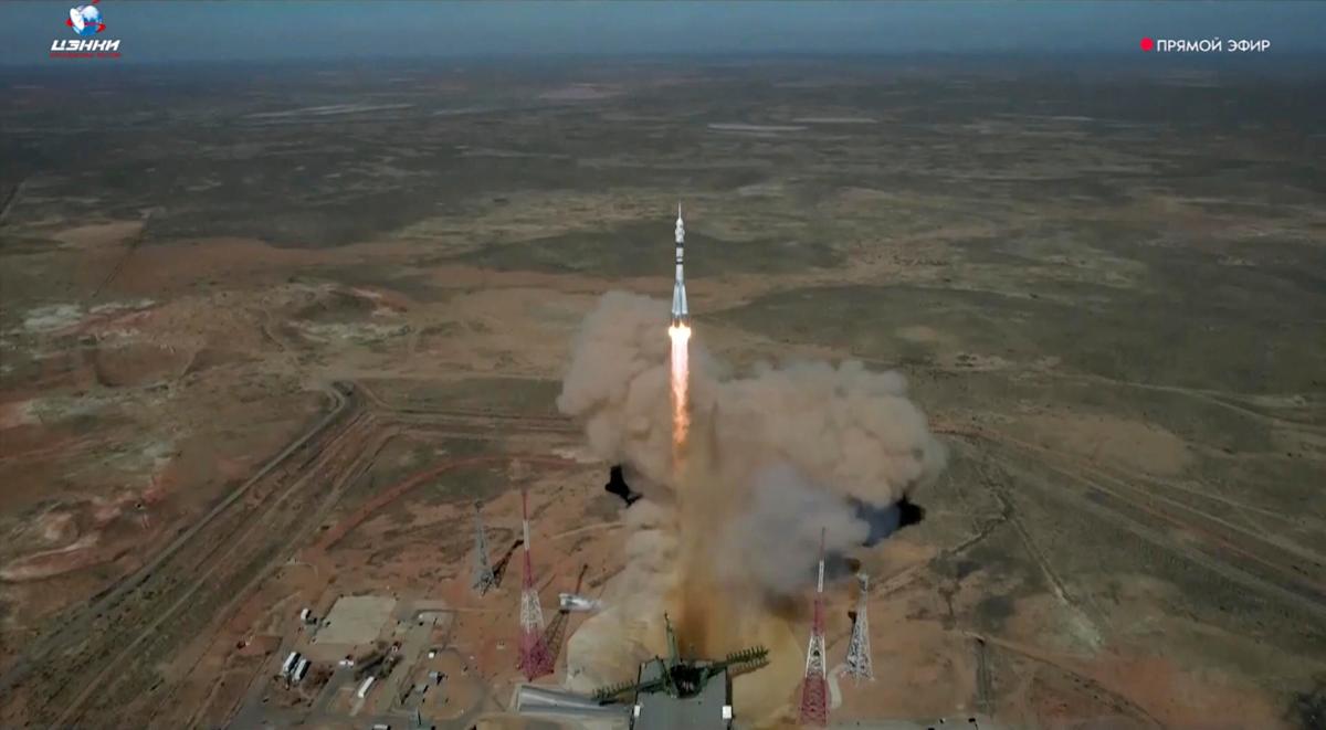 في هذه الصورة التي تم التقاطها من مقطع فيديو أصدرته شركة RoscoSmos Space Corporation ، صاروخ Soyuz الروسي يحمل مركبة فضائية Soyuz MS-27 مع رواد فضاء ناسا جوني كيم وروسكوسموس ، فإن رواد الفسكور الروس في الباحات الروسية ، يتجهون في الباحم. 2025. / الائتمان: ROSCOSMOS Space Corporation ، عبر AP
