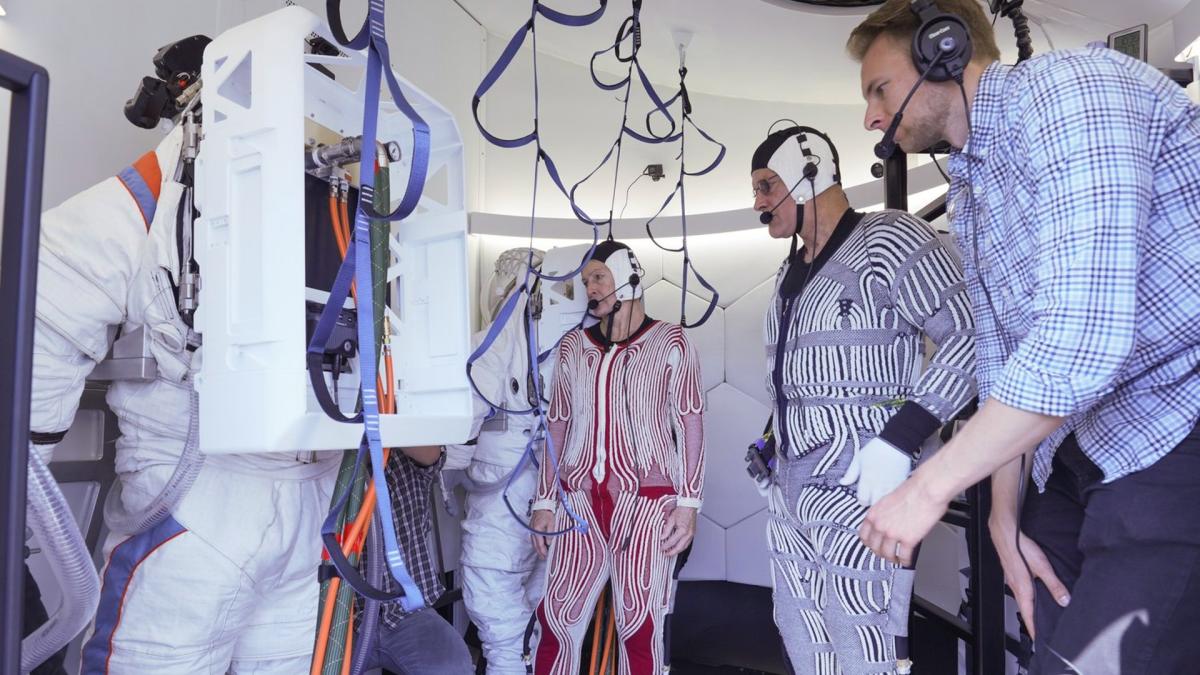 ارتدى رائدا الفضاء، بيجي ويتسون من اكسيوم سبيس ودوغ ويلوك من ناسا، بدلات فضائية في نموذج بالحجم الطبيعي لغرفة معادلة الضغط الموجودة على سطح غرفة معادلة الضغط في ستارشيب. وتضمنت كل بدلة فضاء أيضًا نموذجًا واسع النطاق لحقيبة الظهر لنظام دعم الحياة المحمول، وفقًا لما ذكره أ إفادة بواسطة اكسيوم.