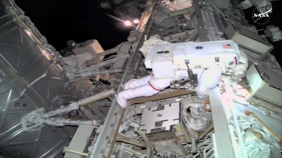عمل نيك هيغ على إصلاح مستكشف التركيب الداخلي للنجم النيوتروني، أو NICER، المثبت على الجزء الخارجي من المحطة الفضائية، قبل أن يقوم هو وقائد البعثة 72 سوني ويليامز بفحص مطياف ألفا المغناطيسي (AMS) خلال النشاط خارج المركبة (نشاط خارج المركبة) لمدة ست ساعات. يوم الخميس (16 يناير).