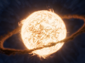 تُظهر هذه الصورة سحب الهيدروجين الحمراء الموجودة داخل نجم عملاق أحمر. | الائتمان: مختبر لورانس ليفرمور الوطني