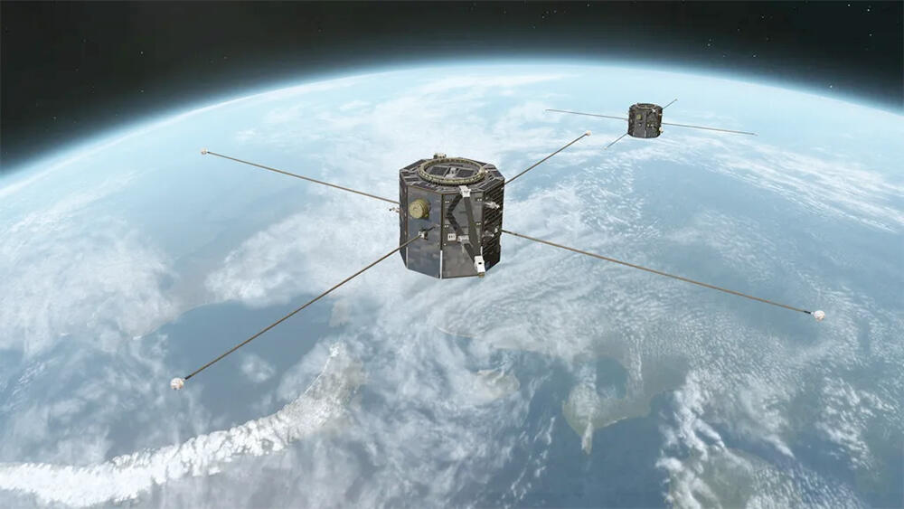 انطباع الفنان عن أقمار التتبع ، يطير واحدة تلو الأخرى في نفس المدار. مع اثنين من الأقمار الصناعية المتطابقة ، يتوقع العلماء قياس التغييرات السريعة في بيئة الفضاء القريبة من الأرض حيث تتفاعل الرياح الشمسية مع المجال المغناطيسي للأرض. / الائتمان: ناسا