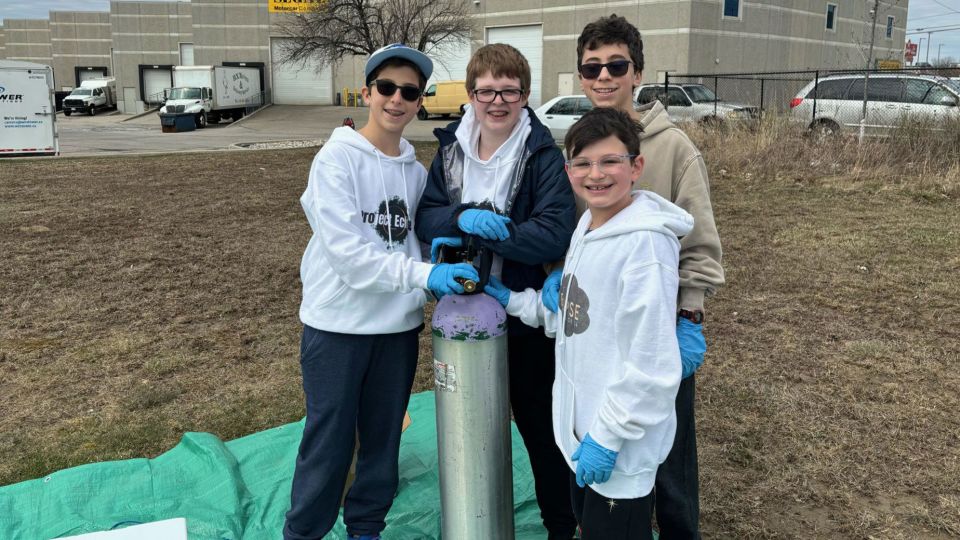 أطلق مايكل غولدشتاين، 12 عامًا، من تورنتو وأصدقاؤه إيلان كاجيدان، ومايكل “ميشا” فيشنيفر، وبرادي سونشاين، منطادًا للطقس من فوغان، أونتاريو، قبل السفر إلى بيرلينجتون لإلقاء نظرة على الكسوف الكلي.
