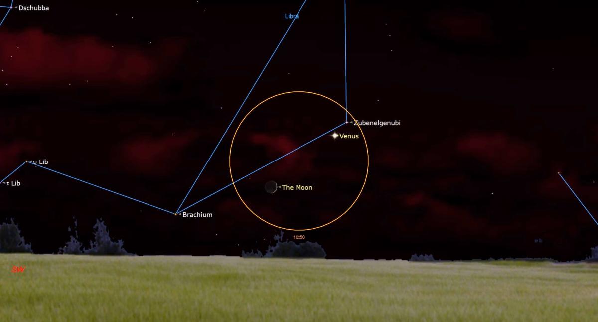في مساء يوم السبت (5 أكتوبر) مع حلول الظلام، تأكد من إلقاء نظرة منخفضة باتجاه الجزء الغربي الجنوبي الغربي من السماء للحصول على لوحة سماوية جميلة مكونة من هلال جميل وكوكب الزهرة اللامع.