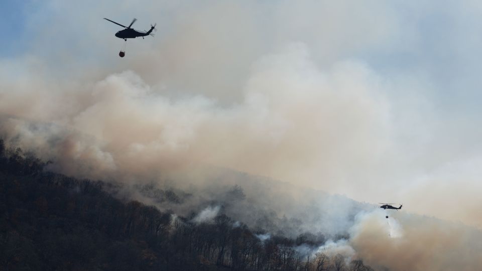يوجد حاليًا 13 حريق غابات في جميع أنحاء الولاية تشمل أكثر من 5000 فدان، وفقًا لمكتب الحاكم كاثي هوشول. ومن بين الحرائق حريق جينينغز كريك/ستيرلينغ ستيت بارك، الذي اجتاح مناطق على طول الحدود بين نيوجيرسي ونيويورك. توفي متطوع في غابة ولاية نيويورك يبلغ من العمر 18 عامًا وموظفًا حكوميًا في 9 نوفمبر عندما سقطت شجرة أثناء استجابته لحريق الغابات في بحيرة غرينوود.
