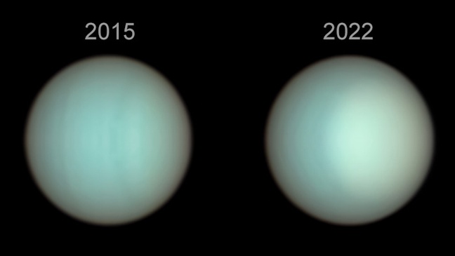 على مدار العقدين الماضيين ، استخدم فريق فلكي إريك كاركوشكا من جامعة أريزونا طيف التصوير بالتلسكوب الفضائي على تلسكوب هابل الفضائي لتتبع التغييرات الموسمية على أورانوس. نظرًا لأن عملاق الجليد يستغرق ما يزيد قليلاً عن 84 عامًا لإكمال مدار واحد حول الشمس ، فقد حصل الباحثون بشكل أساسي على ربيع الكوكب الشمالي حيث انتقلت الشمس من السمر مباشرة فوق خط الاستواء للكوكب إلى القطب الشمالي تقريبًا بحلول عام 2030.