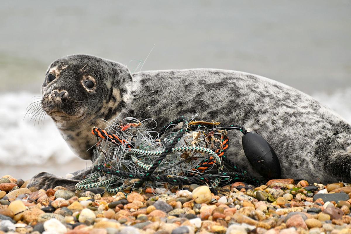 عندما يتم لفّات الصيد أو القمامة أو بالون حول رقبة الختم الرمادي ، فإنه ينمو على أنها الثدييات البحرية – التي يمكن أن تتجاوز 800 رطل – يمكن أن تؤدي إلى إصابة أو وفاة كبيرة.