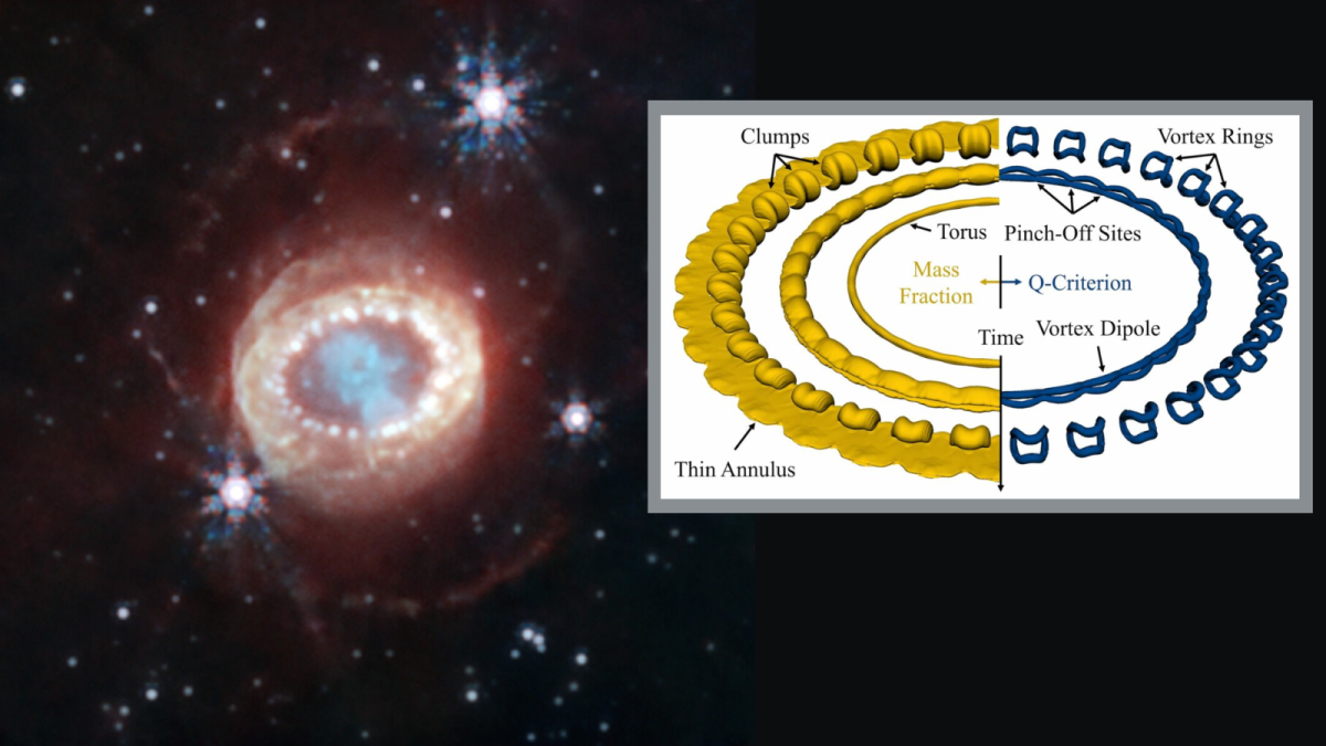 مع هذه الطائرة الموازية، يقترح الفريق أن تشكيل كتل الهيدروجين في SN1987A يمكن أن يكون نتيجة لآلية تسمى “عدم استقرار الغراب”. وبالقرب من المنزل، تحدث هذه الظاهرة عندما يتدفق الهواء من كل جناح من أجنحة الطائرة، المعروفة باسم دوامات قمة الجناح، إلى بعضها البعض. يؤدي هذا إلى خلق فجوات فيما يمكن أن يكون خطوطًا سحابية ناعمة، يمكن رؤيتها بسبب بخار الماء الموجود في عادم الطائرة.