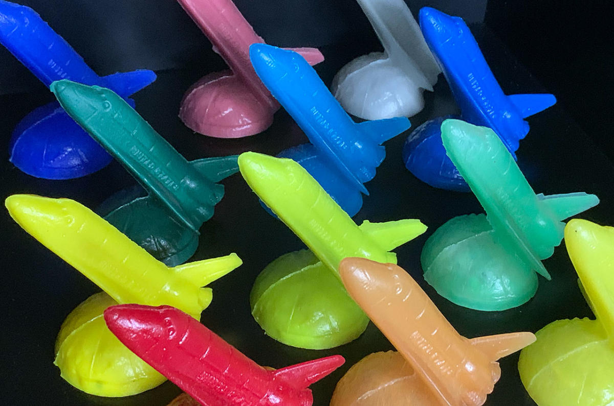 انقر لتجميعSPACE لمشاهدة آلة Mould-A-Rama وهي تصنع نموذجًا بلاستيكيًا لمكوك فضائي فوق الأرض.