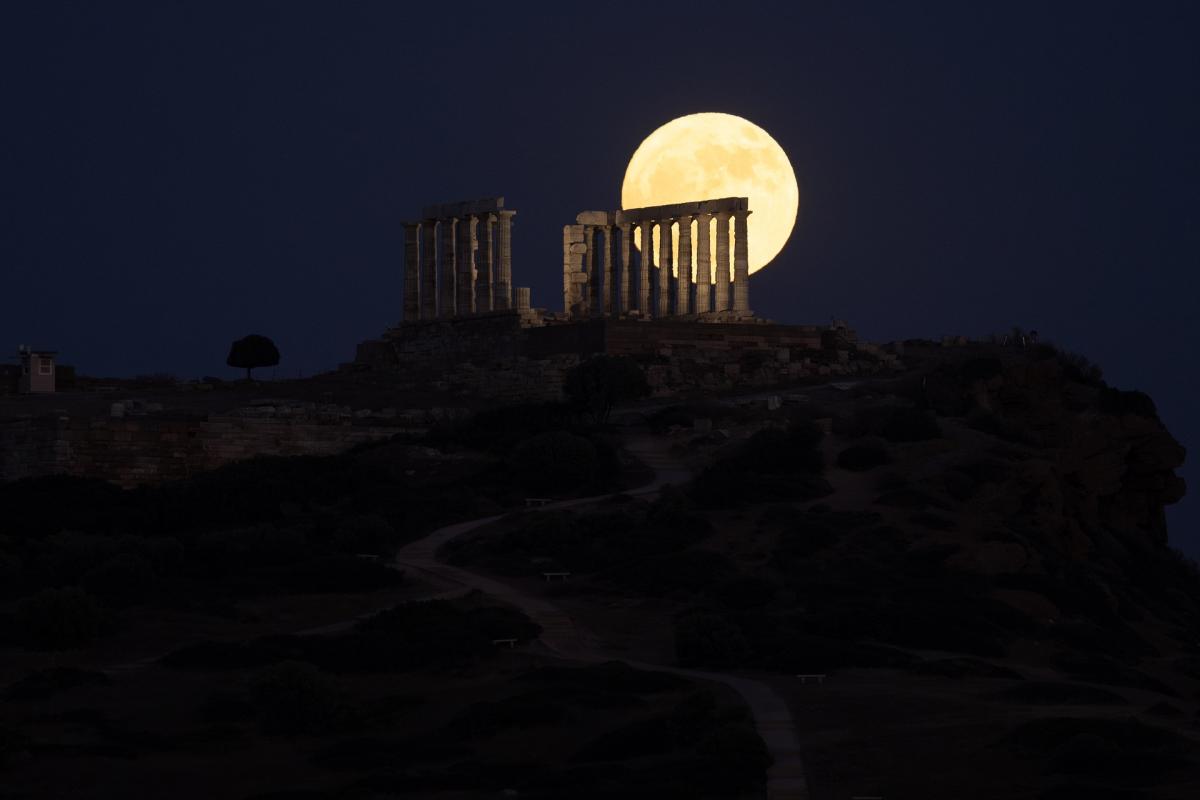 في أثينا باليونان، استغل المصور كوستاس بالتاس الآثار الشهيرة لمعبد بوسيدون لالتقاط صورة لقمر الفراولة وهو يرتفع خلف النصب التذكاري القديم في كيب سونيون لصالح خدمات الأناضول وGetty Image الإخبارية.