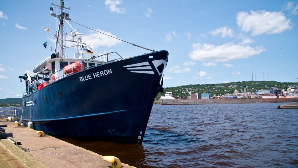 سفينة الأبحاث الأزرق Heron Trawl the Great Lakes ، وجمع البيانات من الماء. ومع ذلك ، فإن أحدث اكتشاف في المختبر العائم ، جاء من موقع غير متوقع: الدفة الخاصة به.