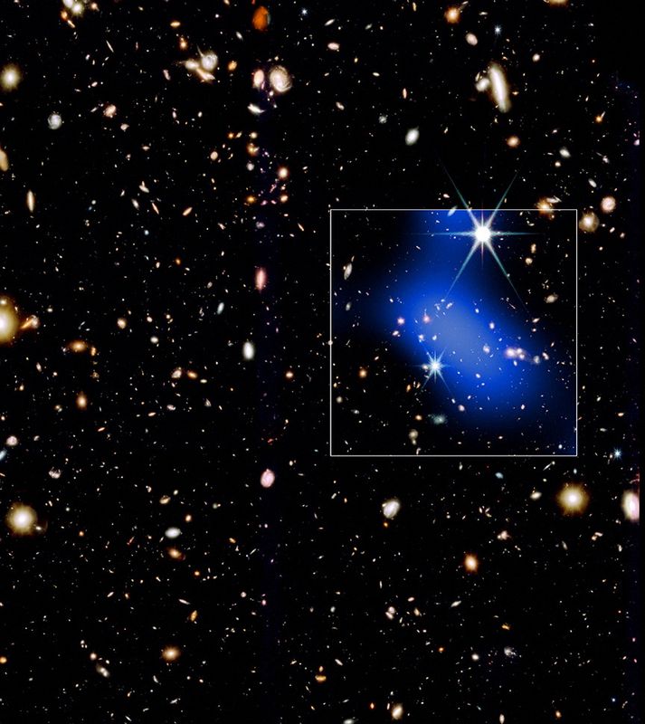 تم العثور على مجرات المجموعة الأولية باستخدام ويب. تم تأكيد انبعاث الأشعة السينية من الكتلة الأولية باستخدام مرصد شاندرا.