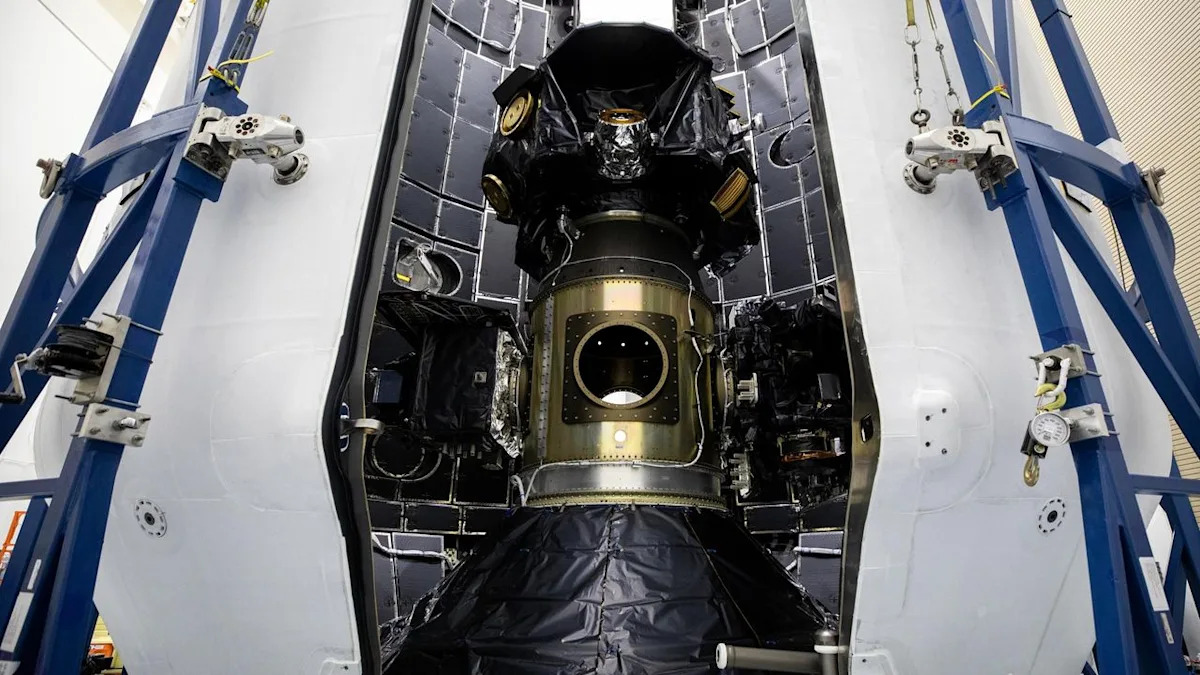 تم التقاط هذه الصورة في منشأة عمليات الفضاء Astrotech بالقرب من ناسا مركز كينيدي للفضاء في فلوريدا.