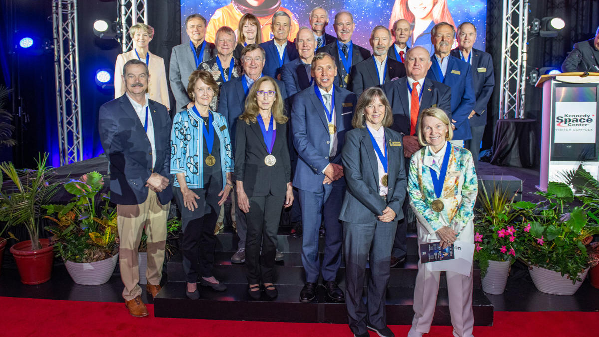 كان الحفل التعريفي لقاعة مشاهير رواد الفضاء الأمريكيين هذا العام أيضًا بمثابة لم شمل من نوع ما، حيث صعد المكرمان إلى المسرح تحت المركبة الفضائية التي التقيا على متنها ذات يوم.