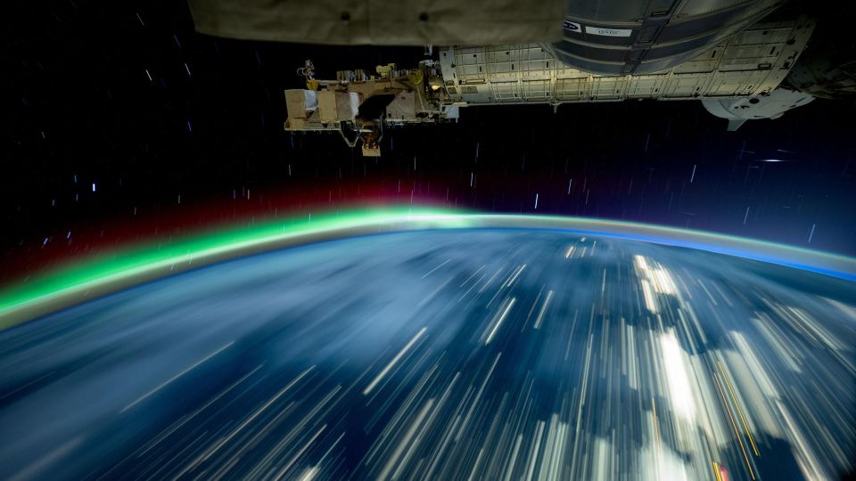 تعرض صورة التعرض لـ Pettit التي تبلغ مدتها 30 ثانية مجموعة خضراء غير مفسرة على المحيط الهادئ. – دون بيتيت/ناسا