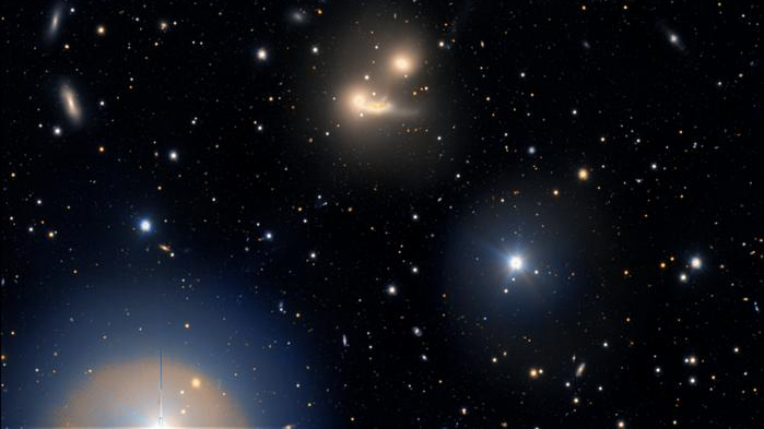 إحدى الصور تصور ESO 510-G13، وهي مجرة تبعد 150 مليون سنة ضوئية في اتجاه كوكبة الهيدرا. من خلال نقاط الضوء التي تمثل نجوم درب التبانة، يمكن بوضوح رؤية الهالة المركزية لـ ESO 510-G13 والقرص على شكل حرف S في يسار الوسط. شكل القرص غريب، ويعتقد علماء الفلك أنه قد يكون نتيجة لتأثير تصادم قديم بين هذه المجرة ومجرة أخرى. يظهر زوج من المجرات البعيدة في الزاوية اليمنى السفلية من الصورة. تقع هذه على بعد 250 مليون سنة ضوئية منا.