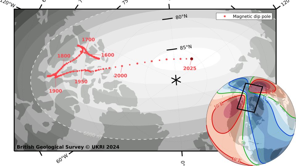 على عكس القطب الشمالي الجغرافي، الذي يمثل موقعًا ثابتًا، يتم تحديد موقع القطب الشمالي المغناطيسي من خلال المجال المغناطيسي للأرض، والذي يكون في حركة مستمرة. على مدى العقود القليلة الماضية، كانت حركة الشمال المغناطيسي غير مسبوقة – فقد تسارعت بشكل كبير، ثم تباطأت بسرعة في تطور أحدث – على الرغم من عدم قدرة العلماء على تفسير السبب الكامن وراء السلوك غير المعتاد للمجال المغناطيسي.
