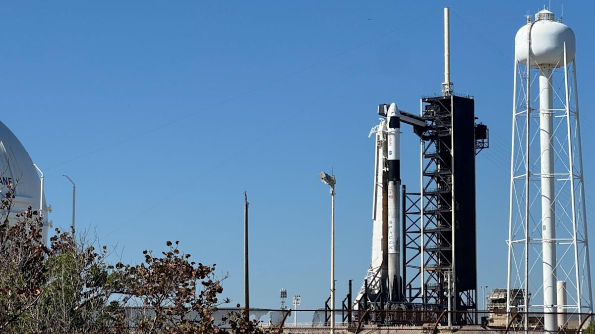 Stand Rocket Rocket و Dragon Endurance من SpaceX من SPACEX خلال محاولة إطلاقه الأولى لإرسال أربعة رواد فضاء إلى محطة الفضاء الدولية من مركز كينيدي للفضاء في كيب كانافيرال ، فلوريدا في 12 مارس 2025. | الائتمان: مستقبل/عشاء جوش
