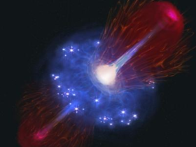 عن قرب من القطن المنسوج من روبوت الأفق الذي يضم عرض تلسكوب جيمس ويب للفضاء لسديم كارينا المعروض في معرض “تتكشف الكون: يتجول عبر الوقت والفضاء” في معرض Torch في أمستردام ، NL. | الائتمان: آشلي زيلينسكي