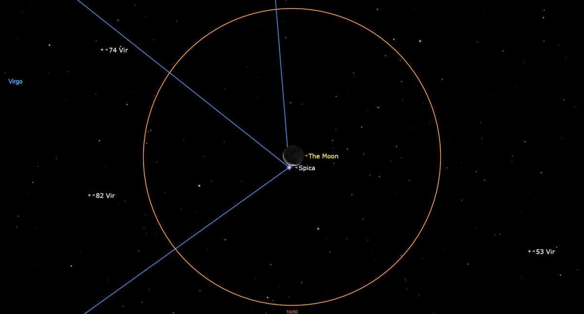 من المؤسف أن الأشخاص المقيمين في أقصى الغرب أو الولايات الجنوبية الغربية الصحراوية سيجدون أنفسهم خارج منطقة الاحتجاب. سيرتفع القمر فوق الأفق الشرقي الجنوبي الشرقي في حوالي الساعة 3:25 صباحًا بالتوقيت المحلي، بعد أن مر بالفعل على السنبلة، حيث يجلس النجم في أعلى يساره.