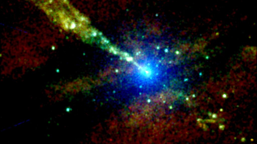 وفي الدراسة الجديدة، قام بوجينسبيرجر وفريقه بتحليل عقدين من ملاحظات تشاندرا للكائنات النشطة ثقب أسود هائل تكمن في قلب مجرة قنطورس، وهي عبارة عن دوامة بيضاوية الشكل مشوهة إلى حد ما من الغاز والغبار حوالي 12 مليونًا سنة ضوئية من الأرض. يبدو أن واحدة على الأقل من “العقد النفاثة” المكتشفة حديثًا تتحرك بسرعة 94٪ سرعة الضوءوالتي كانت أعلى من 80% من سرعة الضوء المسجلة في عمليات الرصد الراديوي، وفقًا للورقة البحثية.