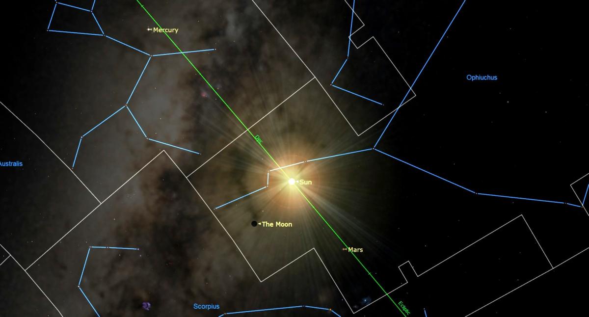 عطارد ليس الكوكب الوحيد الذي يمكن رؤيته ليلة القمر الجديد. بمجرد أن تصبح السماء مظلمة في المساء، سيرى راصدو خطوط العرض الوسطى الشمالية زحل غربًا باتجاه الجنوب حوالي الساعة 6 مساءً. يقع زحل في كوكبة الدلو، لذا فهو يبرز لأن برج الدلو هو كوكبة خافتة. وفي الوقت نفسه، سيكون كوكب المشتري في الجنوب الشرقي، على ارتفاع حوالي 44 درجة عند خط عرض مدينة نيويورك، وبما أنه يقع أيضًا في كوكبة خافتة – برج الحمل – فسيكون متميزًا مقابل نجوم الخلفية.
