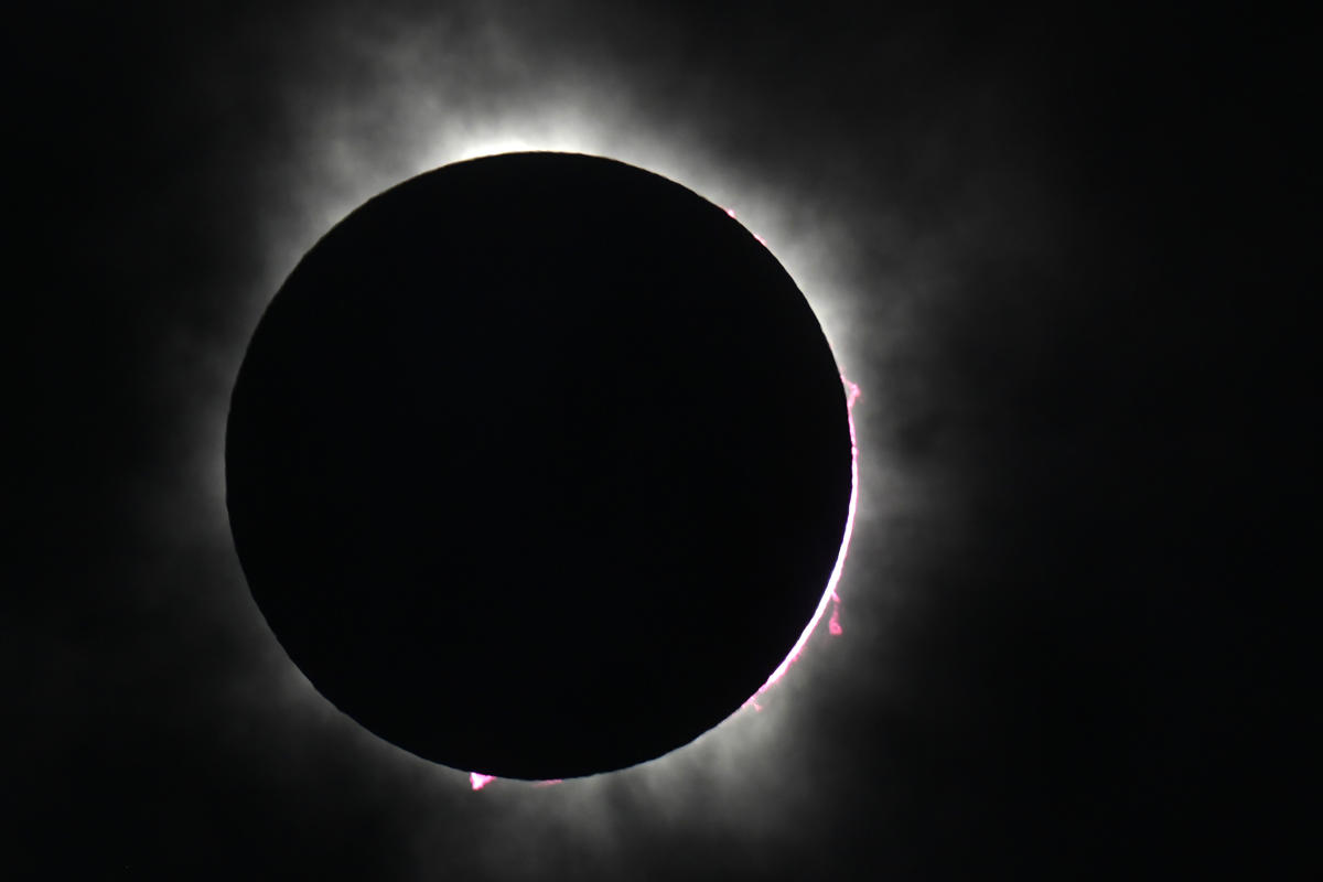 يمكن لكاميراتنا الحديثة التقاط كميات هائلة من الصور، مما يتطلب منا الإدارة والتحرير للحصول على أفضل الاختيارات بطريقة سريعة جدًا. وفي الدقائق والثواني التي سبقت الكسوف، تدفقت السحب للداخل والخارج. ظننت أنني سأُختلس ولن أملك شيئًا. في نهاية المطاف، انفتحت السحب، وانفصلت لبضع دقائق وسمحت للضوء بالدخول إلى الكاميرا الخاصة بي لالتقاط هذه الصورة.