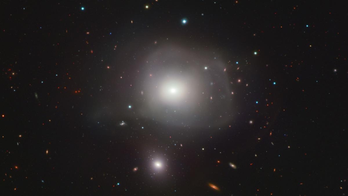 يبدو أن مجرة بيضاوية غير عادية مع تاريخ من امتصاص المجرات الأصغر تقترب من هدفها التالي.