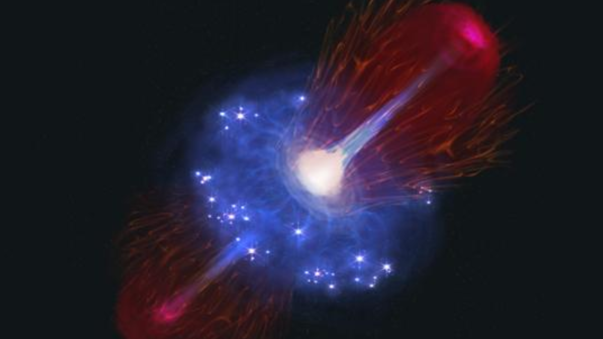 – نفث بحجم المجرة من ثقب أسود وحشي ينفجر جسمًا غامضًا في الفضاء السحيق (فيديو)