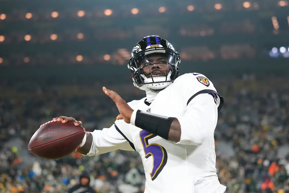 “[Tyler Huntley] يتكور. إنه يتكور. إنه مستعد دائمًا للحظته. في أي وقت يأتي فيه، يمكنني الاعتماد عليه بأنه سيكون جاهزًا طوال الوقت… لامار [Jackson cheers for his teammates]، لذلك ليس مفاجأة بالنسبة لي. وهو يفعل ذلك على أرض الملعب. وهو يفعل ذلك خارج الملعب. إنه يريد أن يرى الجميع رائعين، حتى لو لم يكن يلعب، وهذا يوضح لك من هو”.