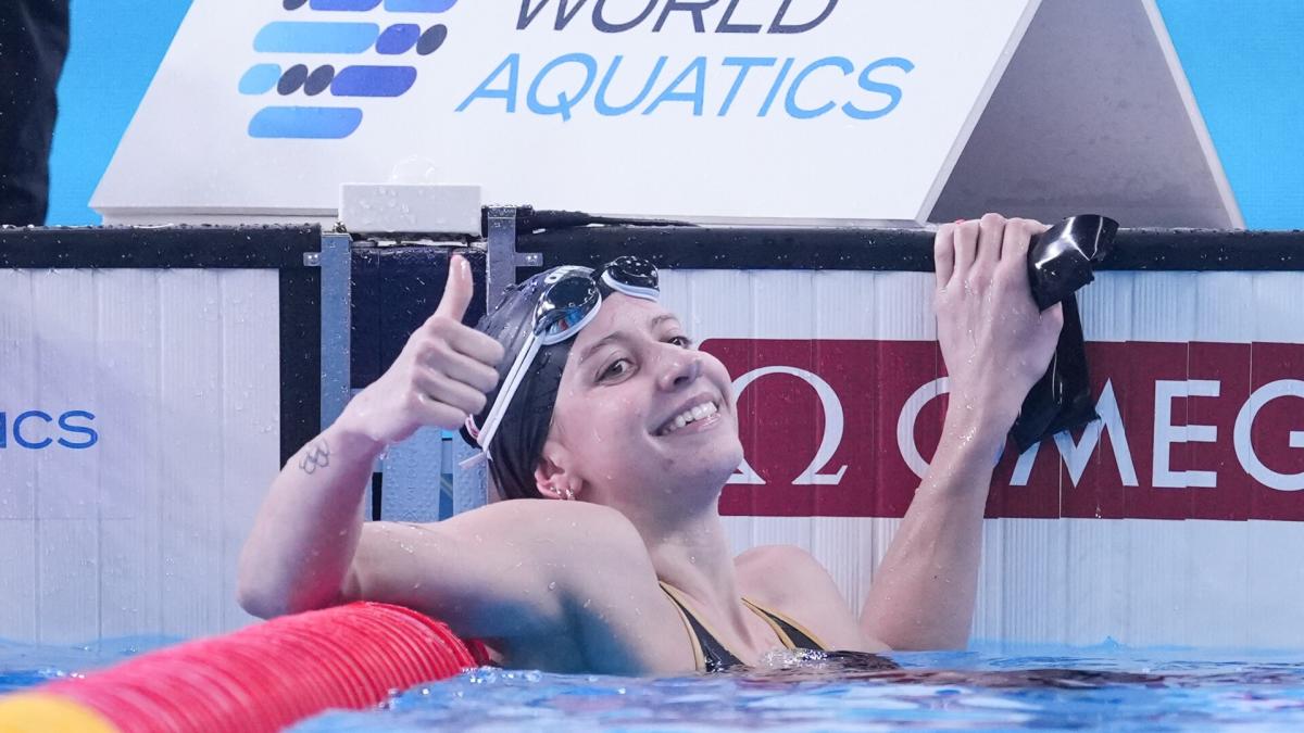 أصبحت كيت دوغلاس أسرع سباحة أمريكية في التاريخ تضع اللمسات الأخيرة على ميدالية متعددة الاستخدامات وفريدة من نوعها في بطولة العالم.