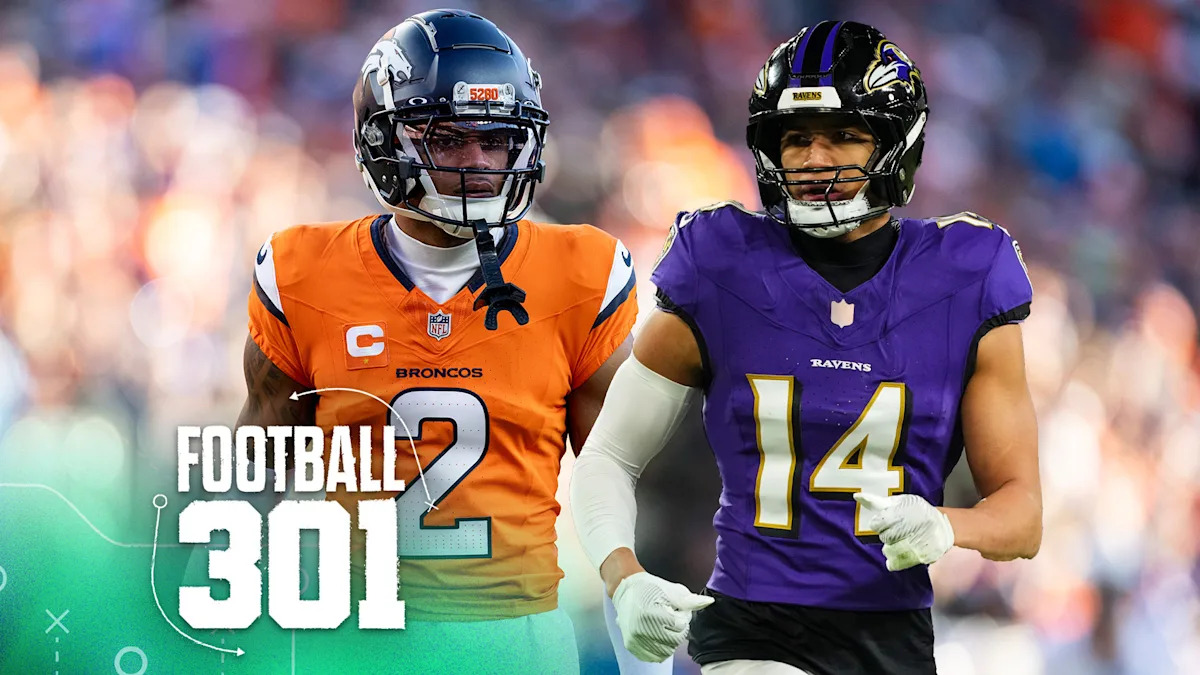 ينظر بات Surtain II #2 من Denver Broncos خلال مباراة كرة قدم في اتحاد كرة القدم الأميركي ضد Indianapolis Colts في Empower Field في Mile High في 15 ديسمبر 2024 في دنفر ، كولورادو ، وكايل هاميلتون رقم 14 من Baltimore Ravens قبل أن يتنافس في مباراة كرة القدم في بلايتيسبيرج في بلايتيسبيرج في شهر يناير ، في يناير ، في شهر يناير ، 2025. (صور لكوبر نيل ومايكل أوينز/غيتي إيمس)