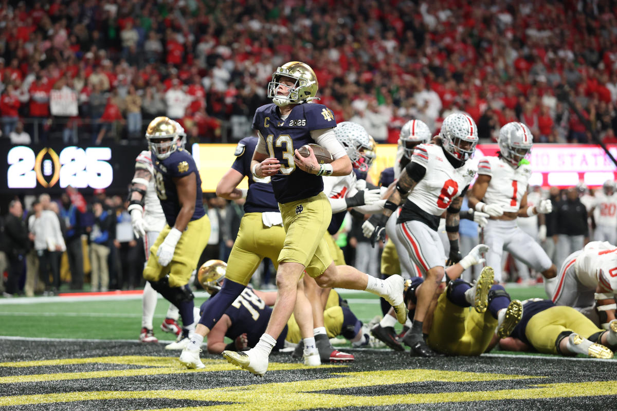 لم يفز رايلي ليونارد ونوتردام بالبطولة الوطنية ليلة الاثنين، وخسرا أمام ولاية أوهايو، 34-23. الحقيقة هي أنهم لم يكونوا في اللعبة لفترة طويلة. سجلت ولاية أوهايو أول خمس ممتلكات لها، وتقدمت 31-7، ولم تقلق كثيرًا بشأن نوتردام بعد تلك الرحلة الافتتاحية.