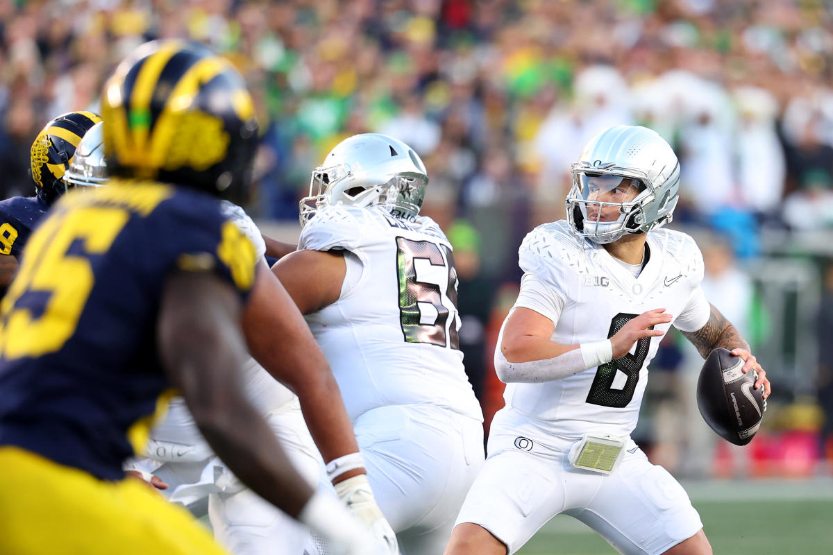 هذا هو عدم التفكير. سنصاب بالذهول إذا كان أي شخص آخر في المركز الأول ليلة الثلاثاء. فاز البط على ولاية بويز وولاية أوهايو وأسقط ميتشيغان 38-17 على الطريق يوم السبت. مع بقاء ماريلاند وويسكونسن وواشنطن في الجدول الزمني، حصلت ولاية أوريغون على طريق رائع لموسم 12-0. ومع ذلك، قد تكون خسارة WR Tez Johnson مصدر قلق كبير. تعرض جونسون لإصابة واضحة في الكتف في الشوط الأول ضد ولفرينز ولم يعد إلى المباراة. يقود البط بـ 64 مسكة. لا يوجد أحد في الفريق لديه أكثر من 31.