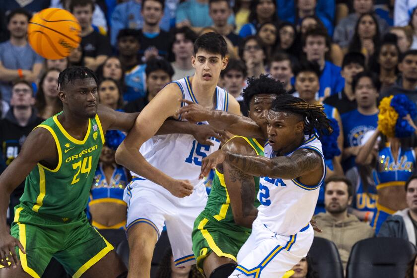 اندمج فريق Bruins على طول الامتداد ليلة السبت، وفاز بالدفعة الأخيرة في لعبة تقلبات الزخم الجامحة. بعد أن حققت تقدمًا مبكرًا بفارق 18 نقطة فقط لتتأخر في نهاية الشوط الأول، انتصرت جامعة كاليفورنيا في لوس أنجلوس بكودا مجنونة مناسبة حيث تخلص بروينز من تسع نقاط متتالية في طريقهم للفوز 71-63 على أوريغون في باولي بافيليون.