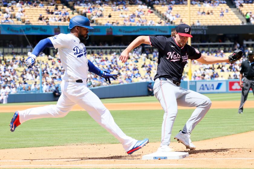 تعافى لاندون ناك، صاحب اليد اليمنى لفريق دودجرز، من الشوط الأول الوحشي من جولتين وثلاث ضربات و28 ملعبًا في أول ظهور له في الدوري الكبير ليقضي على مواطني واشنطن بضربة واحدة خلال الأدوار الأربع التالية ويبقي فريق دودجرز على مسافة قريبة. الأربعاء.