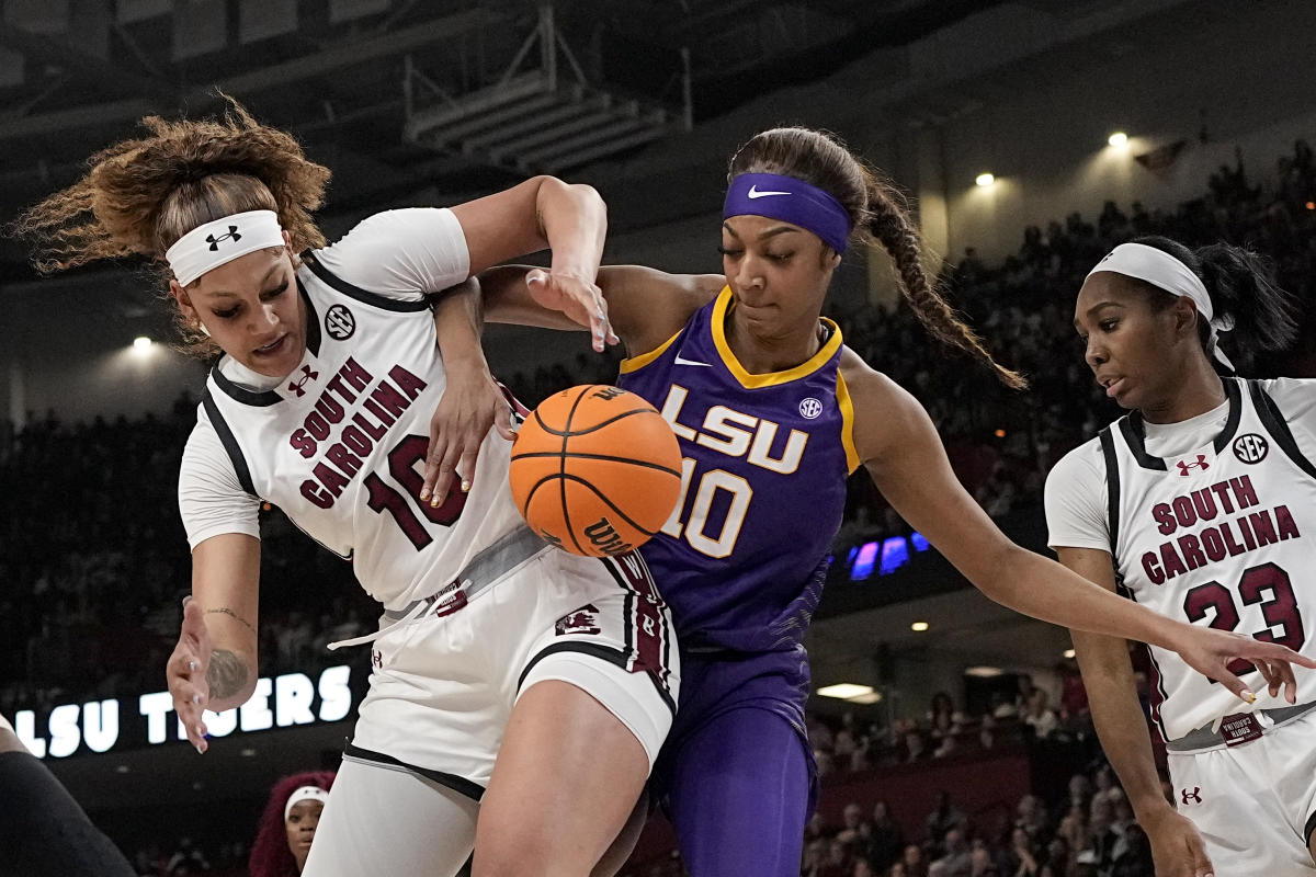 نجا فريق Gamecocks ذو التصنيف الأعلى من مشكلة كريهة من مركز All-SEC Kamilla Cardoso ثم صمد بعد مشاجرة في وقت متأخر من المباراة ليحقق الفوز 79-72. أنهى LSU بخمسة لاعبين مؤهلين وساوث كارولينا ستة بعد شجار المقاصة على مقاعد البدلاء الذي من المتوقع أن يترك Cardoso غير مؤهل في الجولة الأولى من لعب بطولة NCAA.