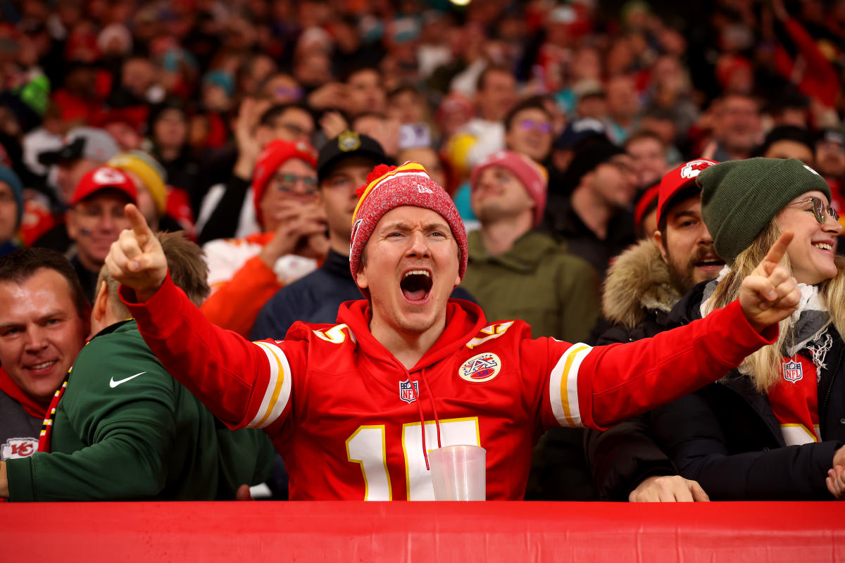 شاهد جمهور كامل يضم 50.023 مشجعًا داخل دويتشه بانك بارك في فرانكفورت بألمانيا فريق كانساس سيتي تشيفز يتصدر فريق ميامي دولفينز 21-14 خلال منافسات الأسبوع التاسع من دوري كرة القدم الأمريكية يوم الأحد. الكثير الكثير، كثير تم ضبطها أكثر في الولايات المتحدة على شاشة التلفزيون.