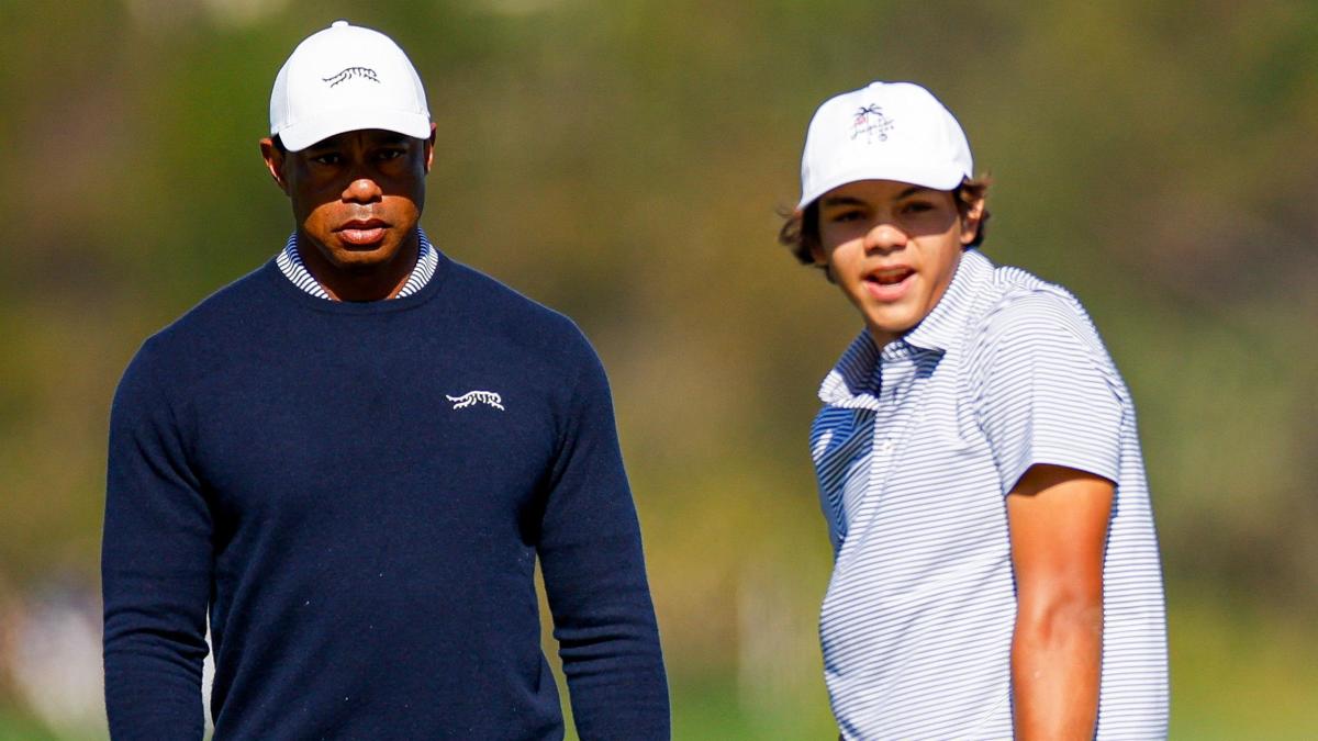تعادل تايجر وودز وابنه تشارلي البالغ من العمر 15 عامًا في الصدارة في نهاية اليوم الأول من بطولة PNC في أورلاندو.