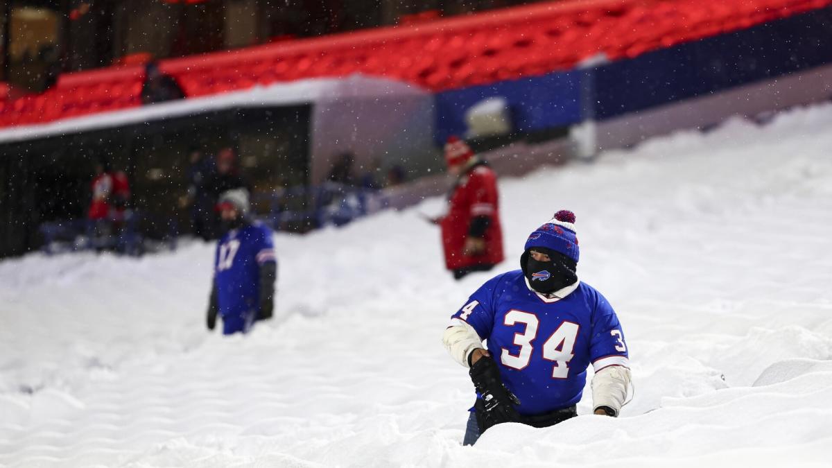 تتعرض بوفالو لعاصفة شتوية كبرى وأعلن الفريق أنهم ألغوا التدريب. وسيعقد الفريق اجتماعات افتراضية بدلاً من ذلك.