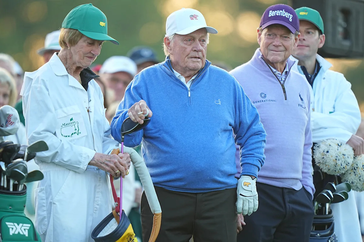 شارك كل من جاك نيكلاوس وتوم واتسون في لقطة TEE الاحتفالية لفتح الماجستير صباح الخميس. (Erick W. Rasco/Sports Illustrated عبر Getty Images)