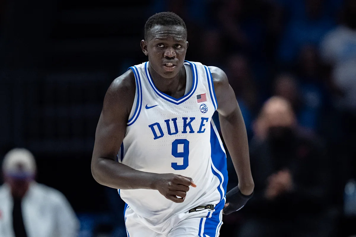 خسر Khaman Maluach و Duke Blue Devils أمام هيوستن في النهائي الرابع يوم السبت. (يعقوب كوبفرمان/غيتي إيمايز)