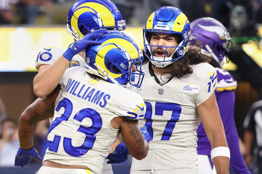 يأمل ستافورد والمدرب شون ماكفاي أن يكون المتلقي النجم بوكا ناكوا قد تعلم درسًا بعد طرده بسبب لكمه لاعب سي هوكس. إذا بقي Nacua في اللعبة، فإنه يتحد مع Robinson وCooper Kupp لإعطاء ستافورد مجموعة من الأهداف.