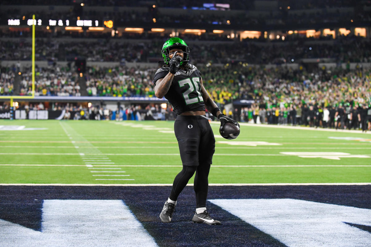 The Ducks هو الفريق الوحيد الذي لم يهزم في المستوى الأعلى لكرة القدم الجامعية وكان رقم 1 في كل إصدار من تصنيفات College Football Playoff. مع فوز جورجيا بخسارتين على تكساس لتفوز ببطولة SEC في وقت سابق من يوم السبت، ليس هناك شك في أن أوريغون سيكون الفريق الأول في فئة يوم الأحد ويلعب الفائز في المباراة رقم 8 مقابل رقم 9 في Rose Bowl في يوم رأس السنة الجديدة. .