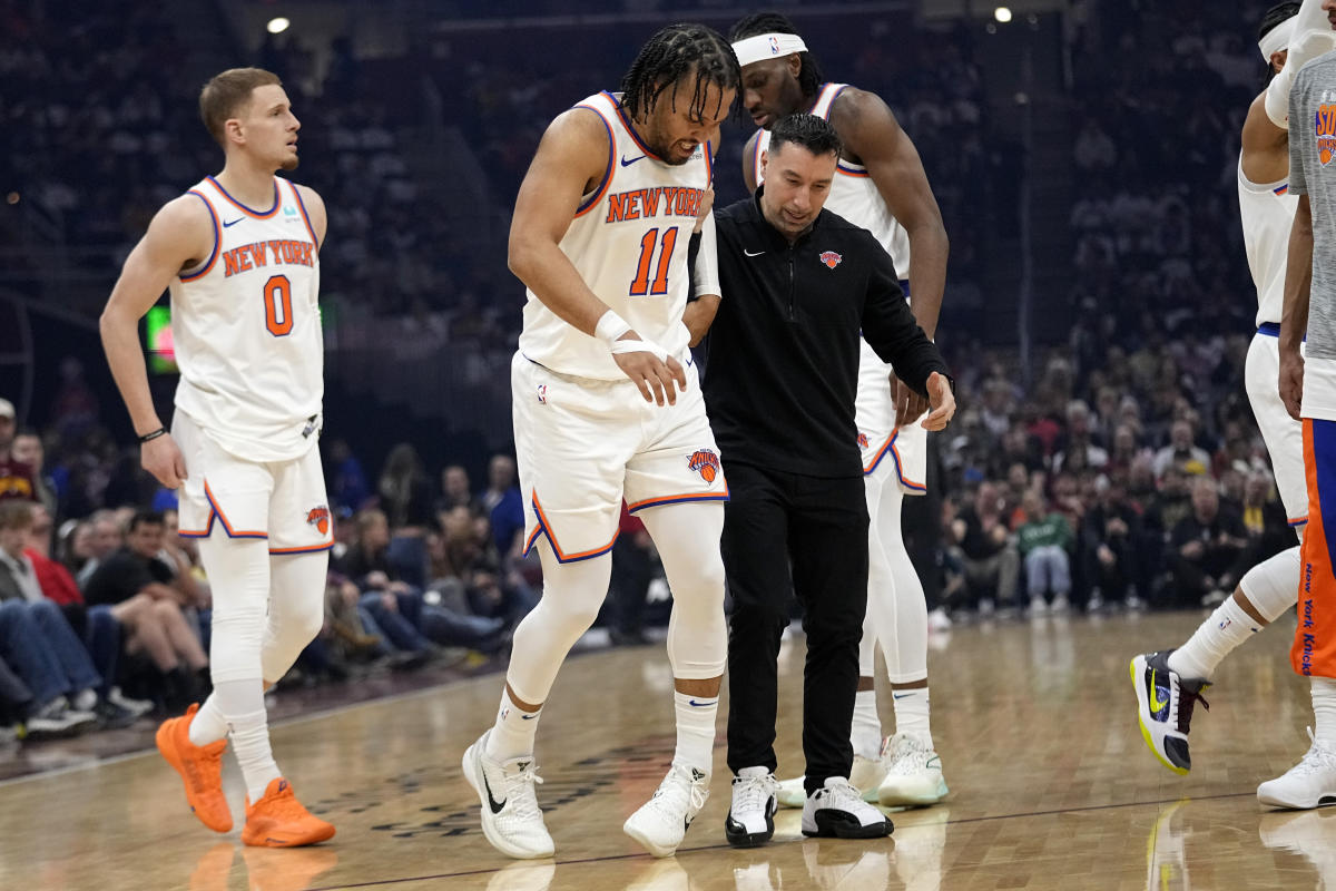 أصيب جالين برونسون نجم نيويورك نيكس بإصابة في ساقه بعد ظهر يوم الأحد خلال فوزه 107-98 على كليفلاند كافالييرز.